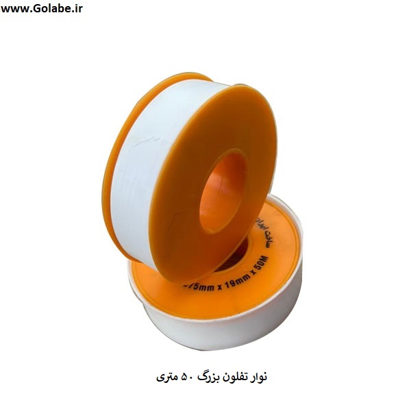 نوار تفلون بزرگ 50 متری بهترین گزینه برای آبندی اتصالات رزوه گالوانیزه و پلاستیکی میباشد.